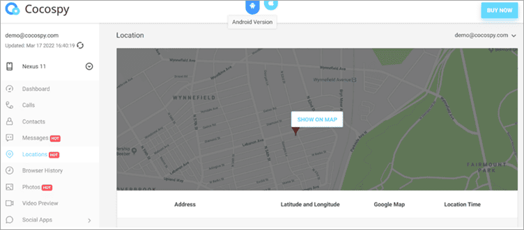 Cocospy – Quando se trata de rastreamento de localização, o Cocospy deve ser um dos melhores aplicativos de rastreamento de telefone que temos à nossa disposição. O recurso intuitivo de rastreamento de localização do aplicativo permite que você rastreie os locais atuais e anteriores de um dispositivo de destino. Os locais podem ser rastreados através de GPS, WiFi e cartões SIM.